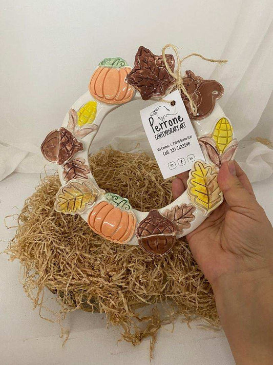 Ghirlanda grande in ceramica bianca Collezione Autunno