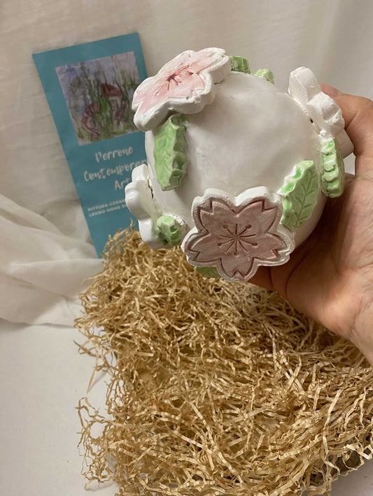 Uovo decorativo in ceramica bianca, Collezione Ciliegio 14 cm