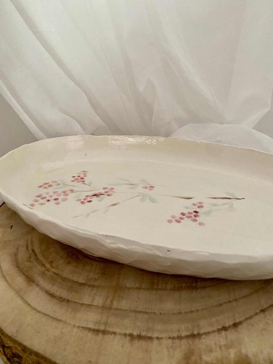 Vassoio grande in ceramica bianca Collezione Ciliegio33 cm