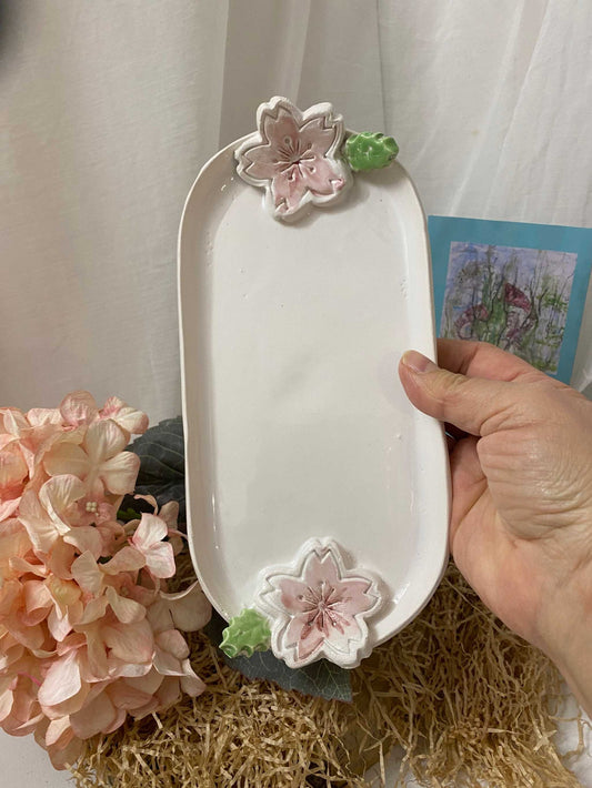 Coppia vassoi in ceramica bianca, Collezione Ciliegio