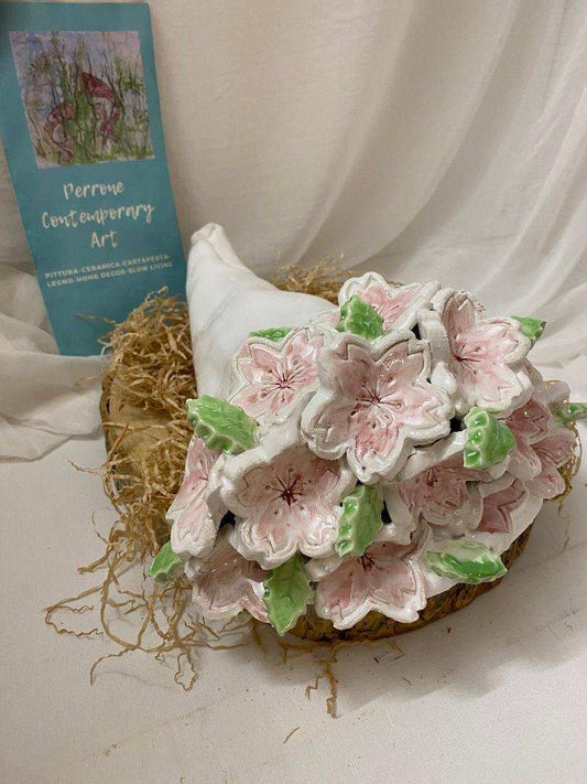 Decoro da tavolo con fiori, collezione Ciliegio in ceramica bianca 30cm