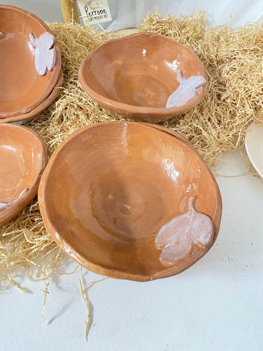Set di 6 Ciotole in Ceramica Rossa – Collezione Mediterraneo con Foglia di Fico