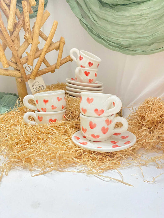 Servizio tazzine da caffe x 6 in ceramica bianca collezione San Valentino