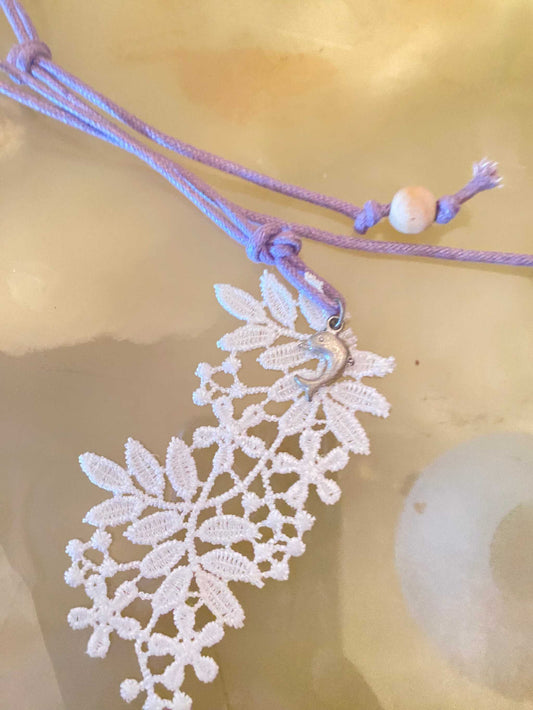 Collana Ciondolo in pizzo macrame e acciaio Collezione Gocce del Salento – Piccoli Tesori a 5 Euro