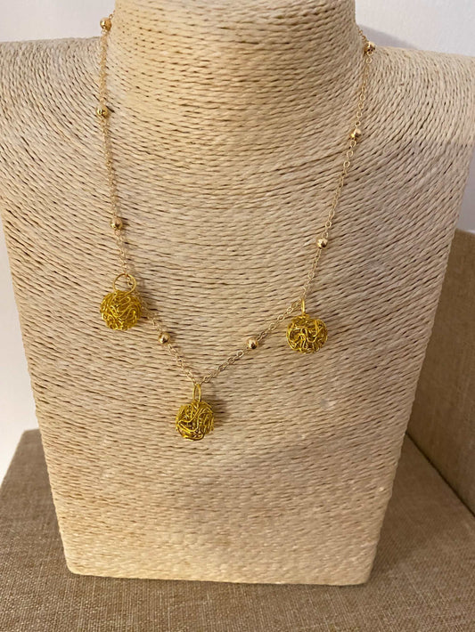 Collana in acciaio Inox color oro, Collezione Luxury Bijoux con sfere lavorate in filigrana