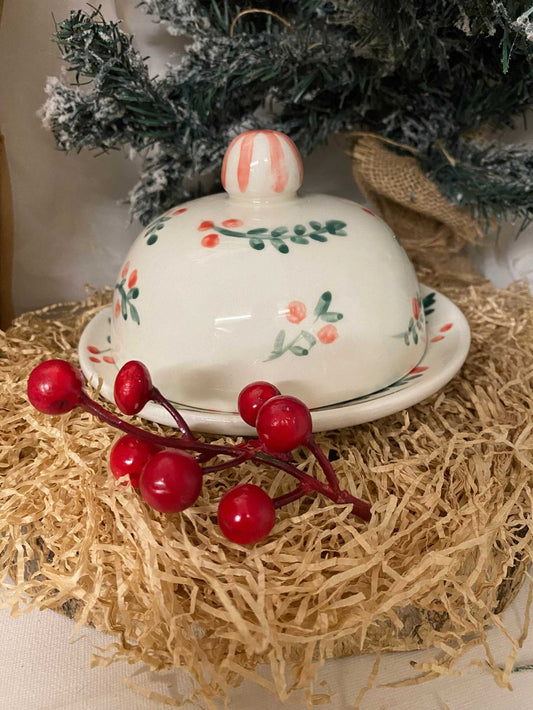 White ceramic butter dish, Christmas collection