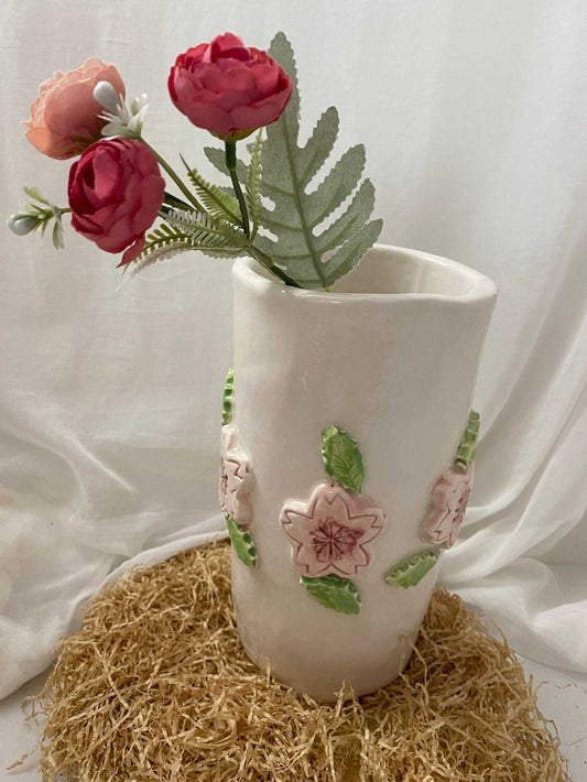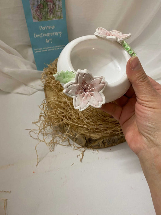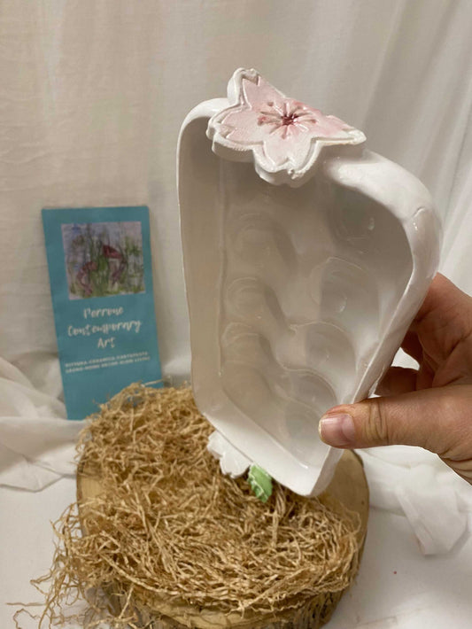 White ceramic flower holder, Cherry Collection