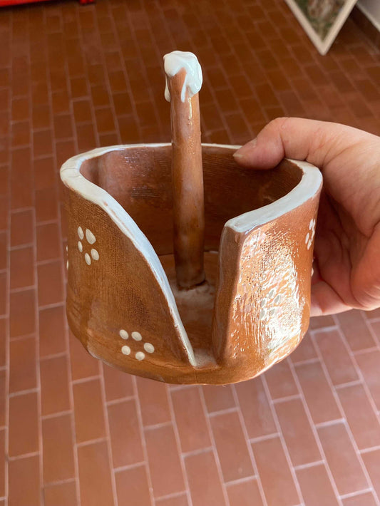 White ceramic and wood roll holder, Autumn Collection