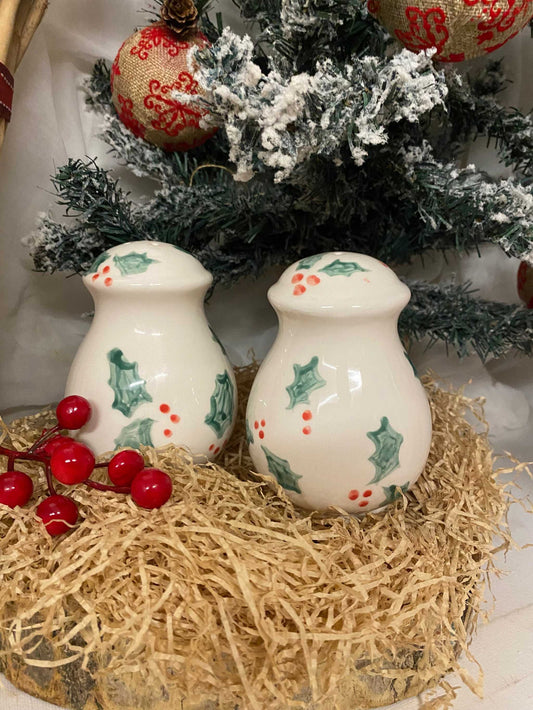 White ceramic salt and pepper, Christmas collection