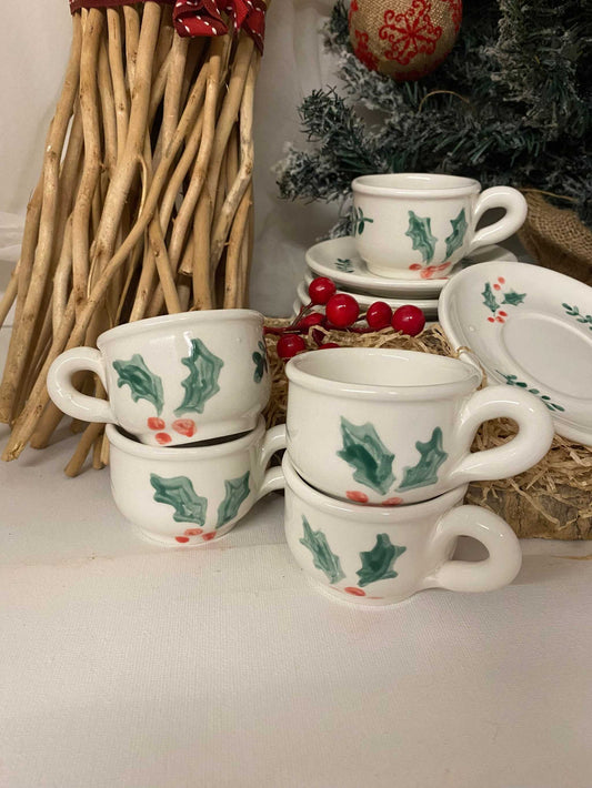 Coffee set with saucers x 6, in white ceramic, Christmas collection