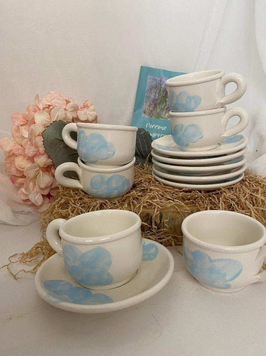Coffee set with saucers x 6, in white ceramic, Nuvola Collection