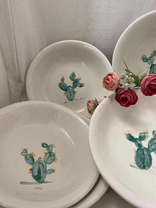 White ceramic soup plate set, Fico d'India Collection